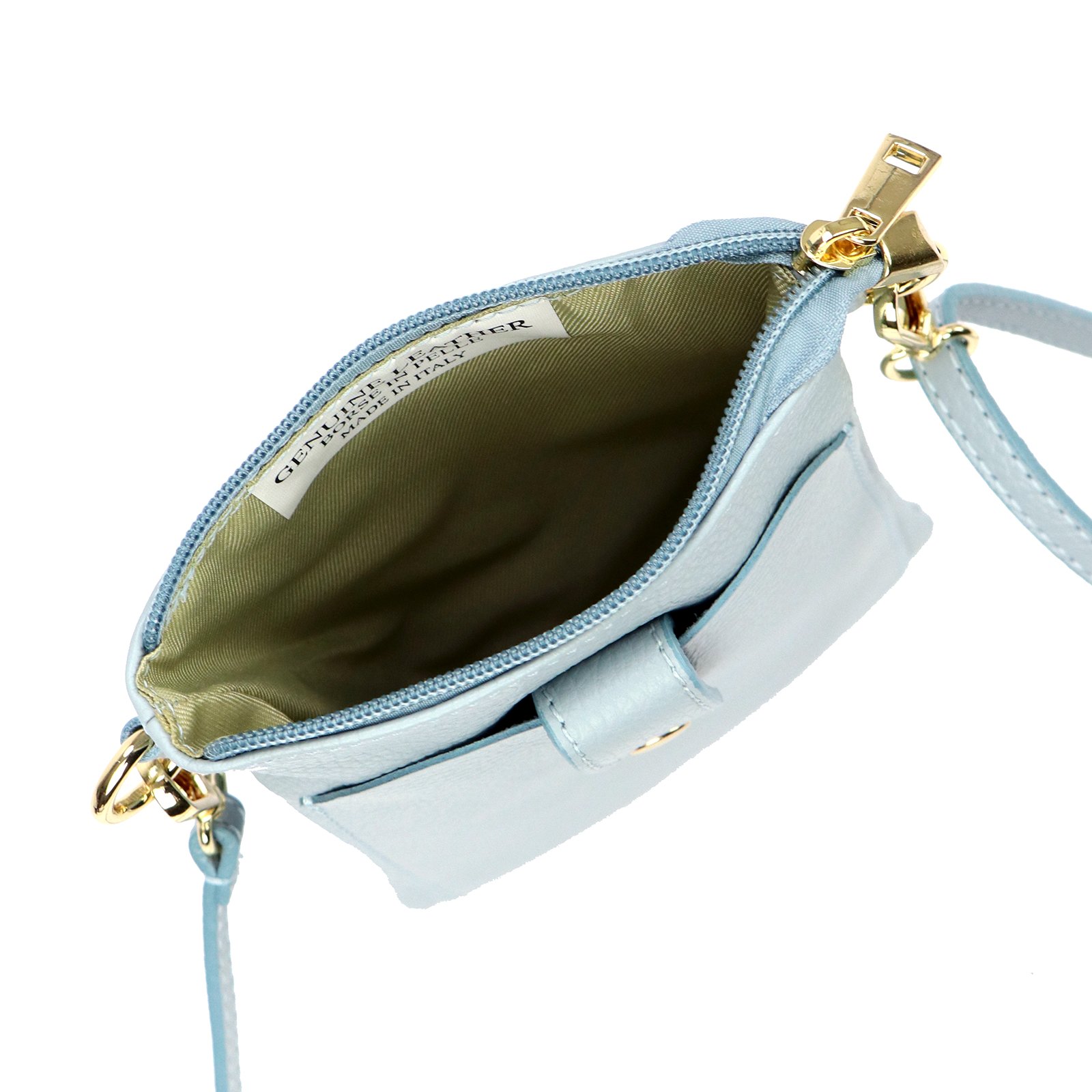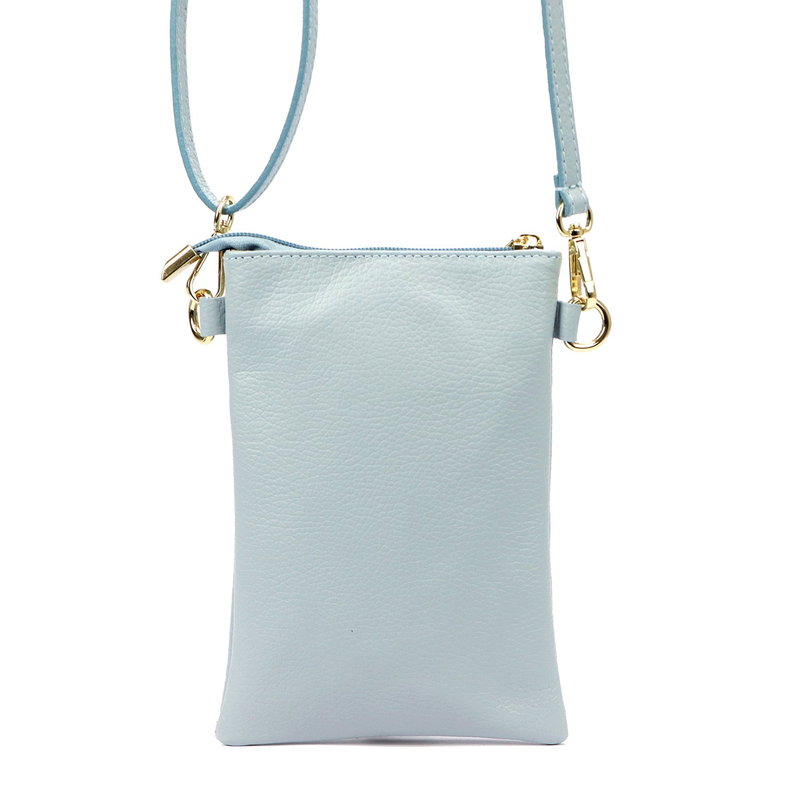 Malutka torebka z naturalnej, włoskiej skóry licowej najwyższej jakości. Torebka ma formę etui na smartfon i budowę jednokomorową. Komorę zamyka zamek błyskawiczny. Z przodu znajduje się kieszonka z zatrzaskiem magnetycznym. Długi pasek pozwala wygodnie nosić ją na ramieniu lub "cross-body".